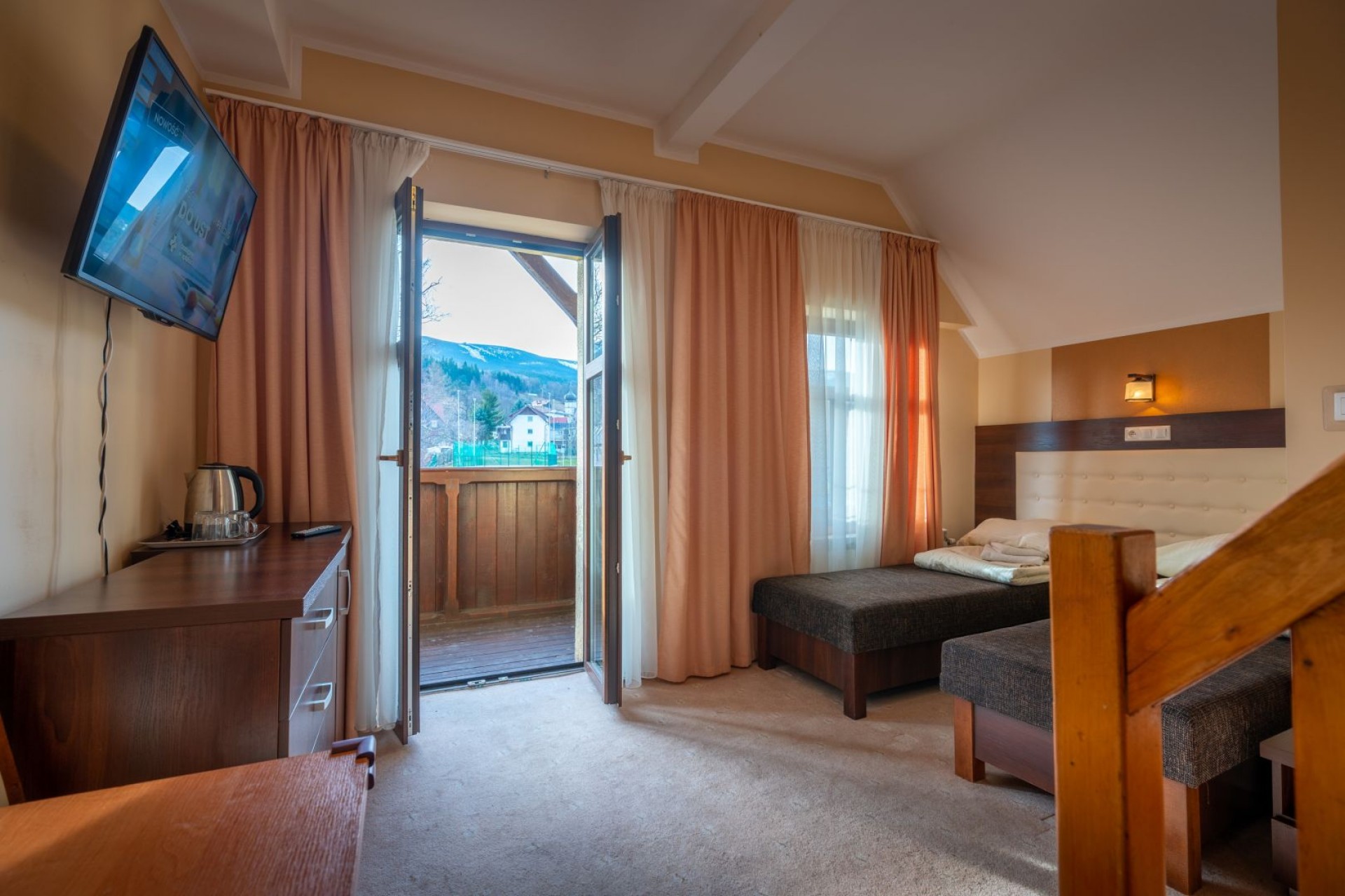 • Zakwaterowanie w pokojach wieloosobowych (3-5 os.) z łazienką, TV, Wi-Fi, wysoki standard oraz widok na góry